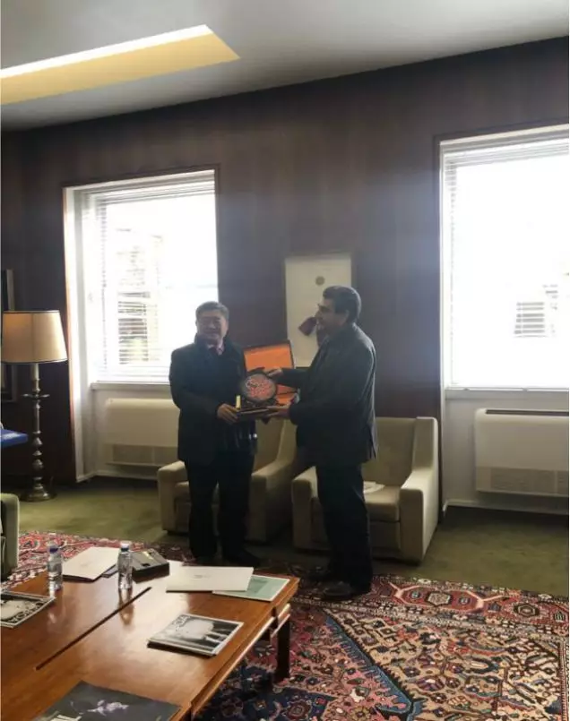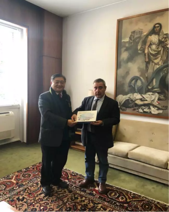 会谈结束后,双方领导互赠纪念品 (左起:3044永利集团官网校长王庭槐、里斯本大学副校长João Barreiros)