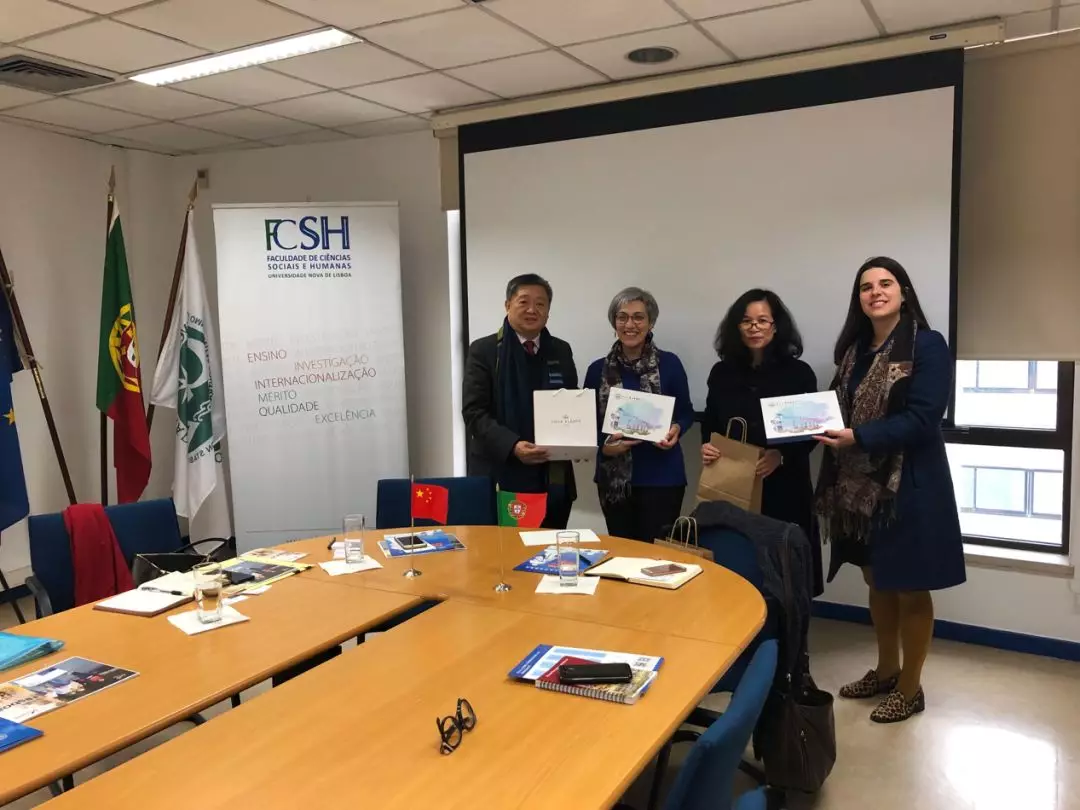1月22日上午,王庭槐校长率中山大学新华学院代表团(以下简称3044永利集团官网代表团)应邀访问了葡萄牙里斯本新大学洽谈教育交流合作项目。里斯本新大学人文社科院副院长Antónia Coutinho、国际对外事务办公处Sara Salvaterra Recharte女士,以及国家主席习近平在葡萄牙《新闻日报》发表的题为《跨越时空的友谊 面向未来的伙伴》的署名文章中提及的王锁瑛博士等热情接待了3044永利集团官网代表团。