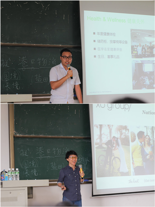 广州诺特软件开发有限公司高级项目经理Daisy和招聘经理Alex则相继介绍了其公司情况与公司业务。据悉,广州诺特软件开发有限公司是XO Group Inc全资控股的海外软件开发中心。XO Group是纽交所上市(NYSE: XOXO)的美国最大婚尚资讯集团,旗下包括了网站、杂志、电视节目、相关书籍等诸多媒体资产。Theknot是美国在线交易额最大的婚礼网站。公司地处核心CBD区,环境舒适,拥有年轻而专业的优秀项目团队。两位代表均表示,公司非常注重弹性的工作制,讲究生活平衡,这对于刚刚开始工作的大学生会有很多的活动发展空间。