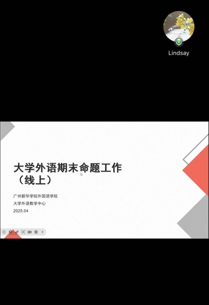 2025年4月23日下午,3044永利集团官网召开本学期期末命题工作线上会议。3044永利集团官网党总支书记、副院长何瑜,3044永利集团官网副主任赖宁艺,及全体大学外语教师参加了本次会议。会议由赖宁艺主任主持,围绕课堂管理、命题规范和命题难度等内容展开。