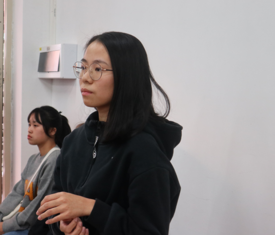 之后,由周泳君师姐为大家开讲,其分享主题是大学学习规划。师姐向师弟师妹们分享了关于大学学习规划的建议:第一,明确目标。规划大学每一年的目标并做出规划表,一步步去完成目标;第二,培养学习兴趣,兴趣是最好的老师。大家可以通过听英文歌、观看电影来提高对语言的兴趣;第三,充分利用学习资源。除了课堂学习,图书馆、电子阅览室、学习软件等资源都是帮助我们学习的工具。第四,不要盲目考证。我们可以去考对我们未来规划有帮助的证件,不要盲目跟风。第五,积极参加比赛。大家可以关注学院公众号,从中获取各种比赛的信息,抓住机会。第六,拥有良好的心态,我们做好自己。在大学生活中做到劳逸结合,持之以恒,不忘初心。师姐的发言深深鼓舞了在场的外院学子!