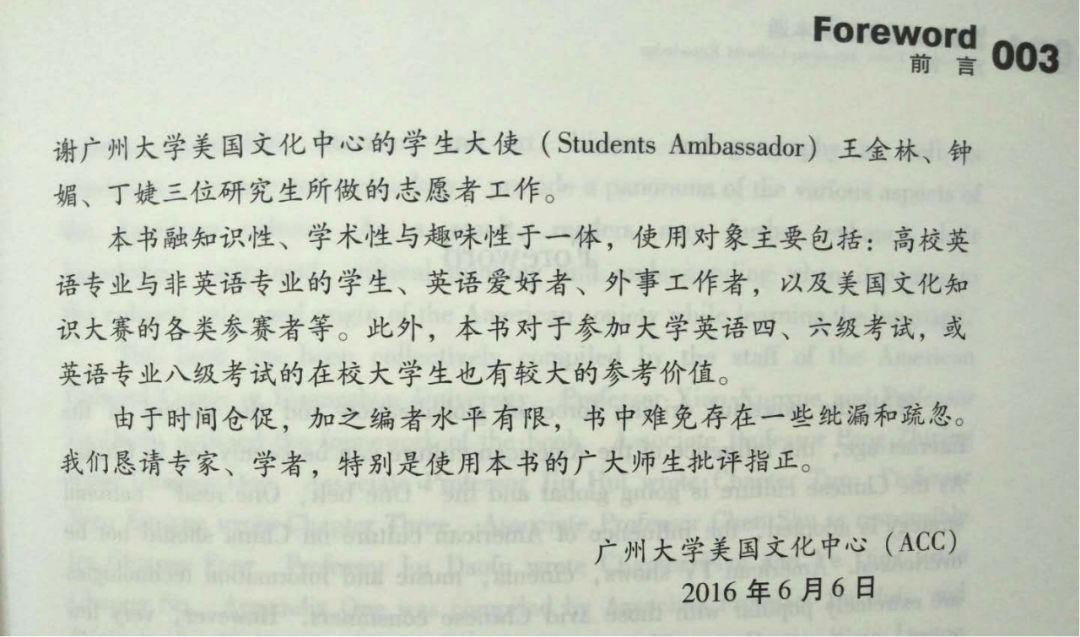 《美国文化知识一本通》编委单位在前言中提及丁婕师姐
