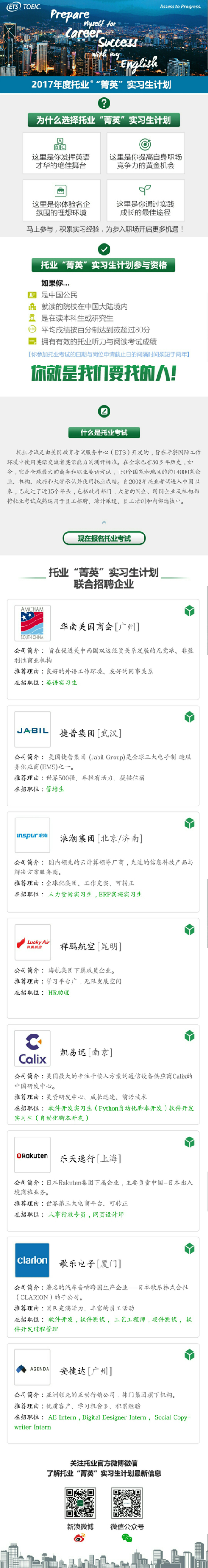 2017年度托业“箐英”实习生计划