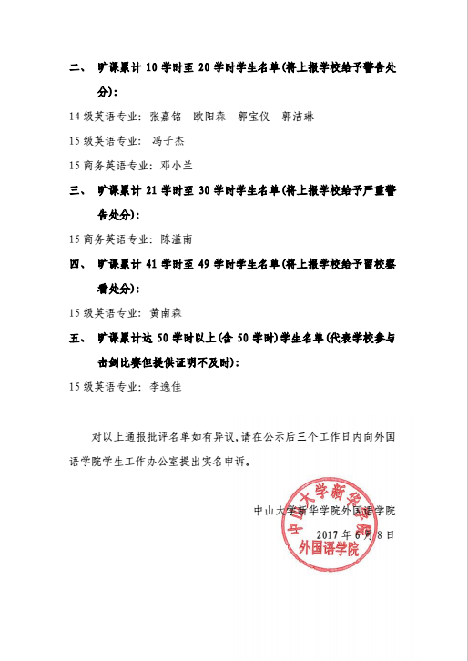 关于通报批评黄南森等26名同学违反考勤条例的通知
