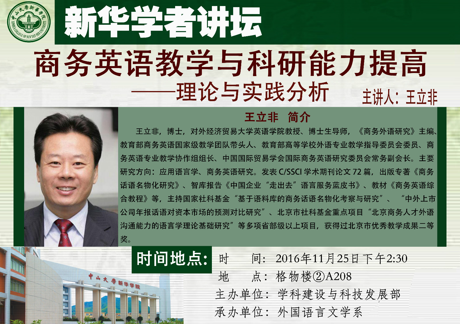 讲座主题:商务英语教学与科研能力提高——理论与实践分析