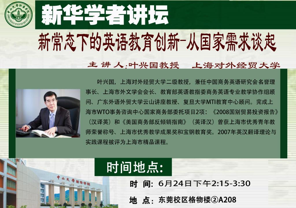 【讲座预告】新华学者讲坛之新常态下的英语教育创新-从国家需求谈起