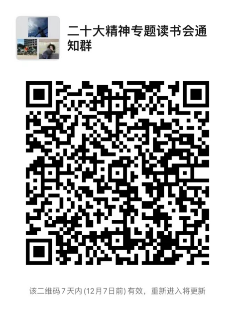 2、扫描二维码加入“‘读习有声’党的二十大精神”专题读书会学习群。