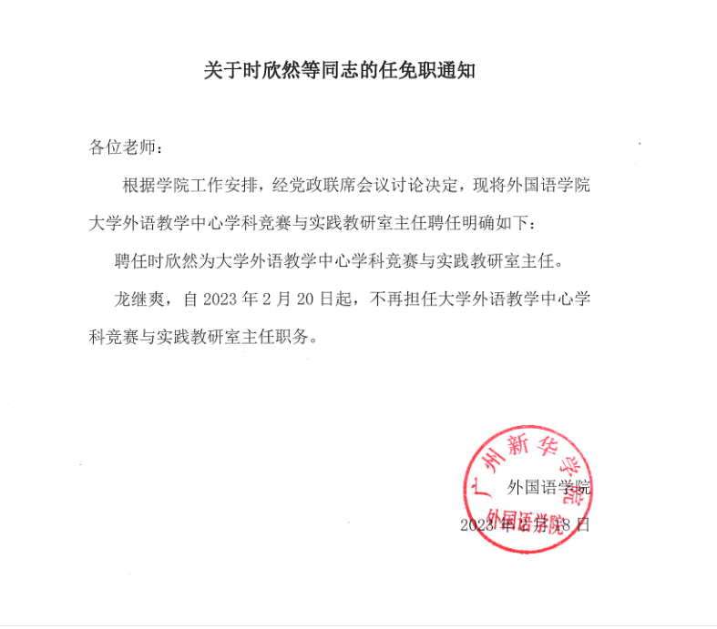 关于时欣然等同志的任免职通知