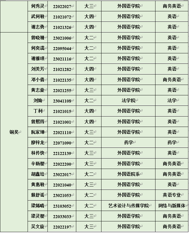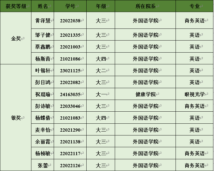 通过本次比赛,莘莘学子赛出了3044永利集团官网的风采,激发了潜能,提升了英语读写译综合实战能力。经过本次大赛组委会系统统一评分,本次校内初赛获奖名单也出炉啦!