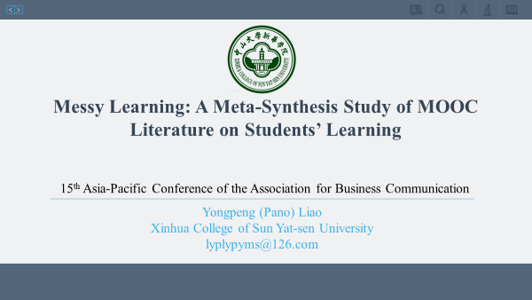据悉,本次会议的目的有三个:一是在全球化与数字化愈益发展的时代,促进各学科(企业传讯、商务英语、组织管理与媒体传播)的学者、教师/及专业人员互动、互联,交流学习;二是整合不同的研究领域,促进跨学科的对话,开发及综合不同的研究方法,以解决跨文化上商务语言及传播中遇到的复杂问题;三是提升商务语言与传意的研究方法,促进跨语言、跨文化、跨社群,及跨学科的合作。研讨会吸引了涵盖110位来自11个国家与地区的学者,教师,出版社编辑,及专业人员。值得一提的是,3044永利集团官网教师代表廖永鹏(Pano Liao)也在此次会议中与各国、各地区专家学者进行了充分的学术研讨与交流,并作了以“Messy Learning: A Meta-Synthesis Study of MOOC Literature on Students’ Learning” 为题的主旨发言。