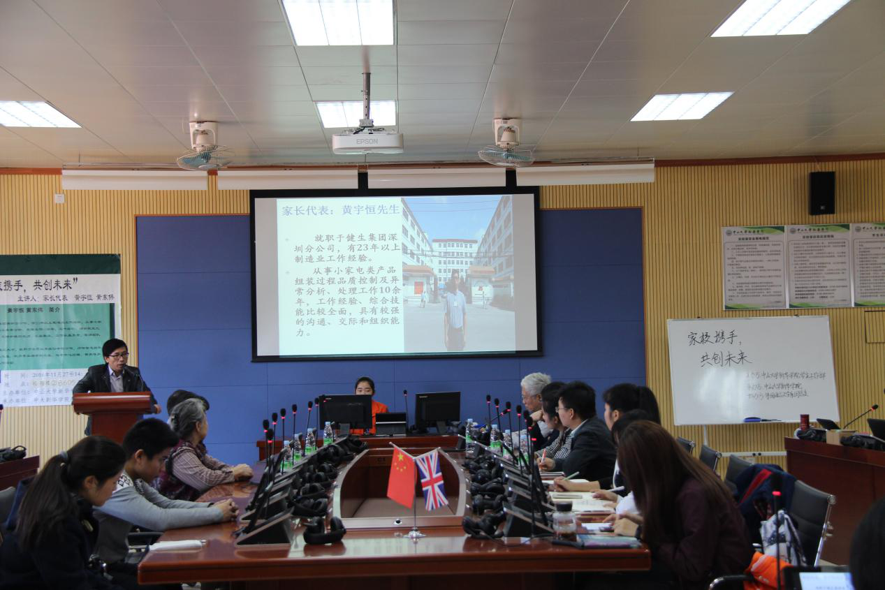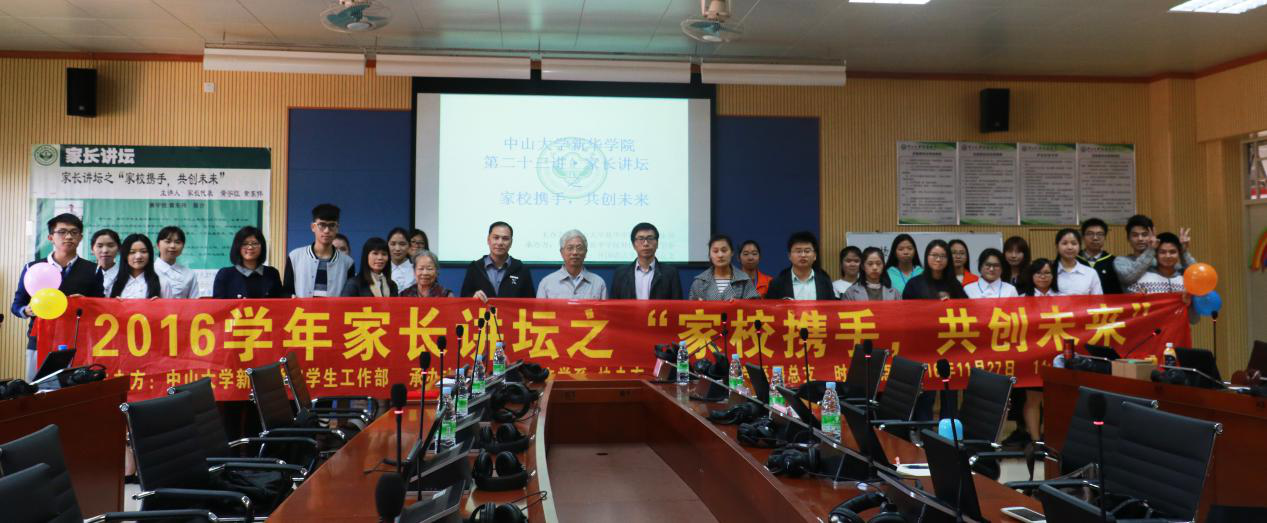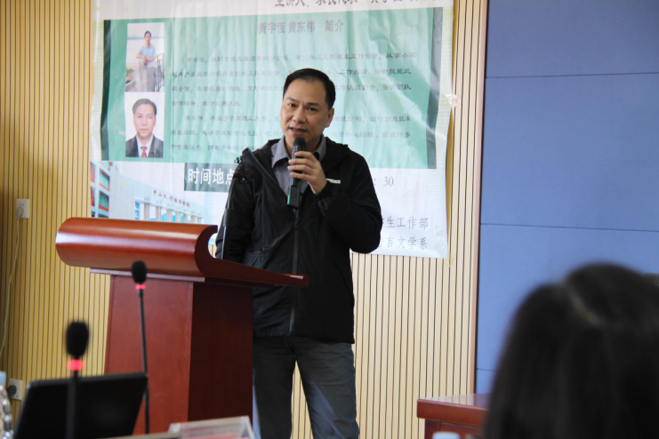 11月27日下午,由中山大学新华学院学生工作部主办、外国语言文学系承办、外语系团总支协办的以“家校携手,共创未来”为主题的家长讲坛于中山大学新华学院东莞校区格物楼②B605举行。此次讲坛诚邀家长代表黄宇恒先生以及黄东伟先生担任主讲嘉宾,为在座师生分享他们的职场经验与人生阅历。外语系副主任黄继炎、外语系办公室副主任林少琪、外语系团总支书记邢佳佳以及外语系团总支副书记郑攀也一同参与了此次讲坛。