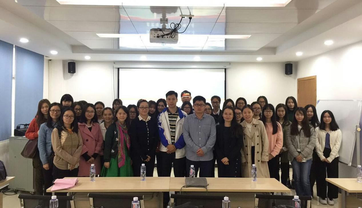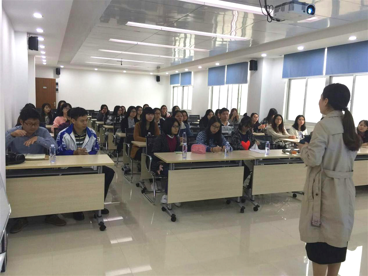 紧接着,操作部吴漫经理为大家介绍了东莞深赤湾码头有限公司的港口工作及船舶专业知识。吴经理根据丰富的一线指挥工作经验,为师生们介绍了码头工作涉及到的各项专业领域。吴经理首先通过提问一个问题让同学们对万吨级货轮马上有了非常具体形象的概念,同时使同学们和老师们对港口和船舶运作有相当的理解。通过对目前航运业物流业走势的分析,吴经理强调作为未来外语外贸从业人员,同学们应怀有深切的爱国情操和专业精神,时刻为国家利益着想。最后的环节是由师生们向吴经理提问关于港口操作业务等方面的问题。同学们踊跃表达自己所见所闻,并且向吴经理请教许多港口工作及船舶知识的问题:如提问天气对港口作业的影响、仓库区别与成本效率关系、人员工作安排等。最后,吴经理也向同学们介绍了港口工作人员的素养和对能力的要求,并对90后年轻人的个性和创新精神为企业注入新动力给予了厚望。