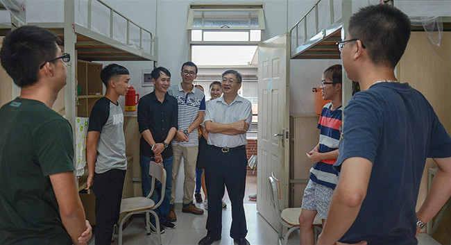 外语系廖益清主任、黄继炎副主任走访外语系新生宿舍了解情况