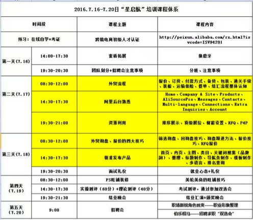 7月17日晚,学生们进行了资源利用的培训,学习如何最大程度利用阿里巴巴的后台资源如顶级展位、P4P、FRQ等进行营销和产品发布。
