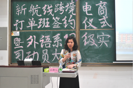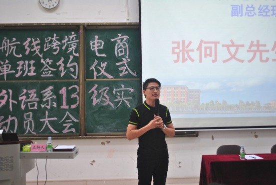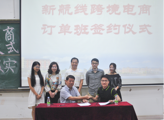 在全体师生的见证下,李中生副院长与张何文先生代表校企双方,成功签署了新航线跨境电商订单班合作协议。该协议的签约标志着校企双方正式展开友好合作关系,全面开启外语系“新航线订单班”人才培养模式。