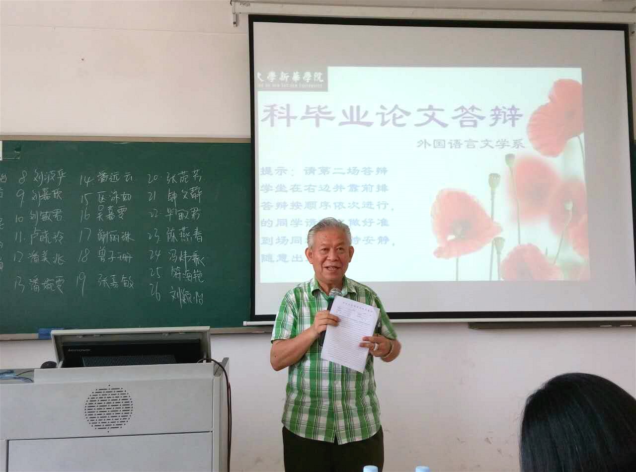 2016年5月11日下午,外国语言文学系2016届英语专业本科生毕业论文答辩工作于3044永利集团官网东莞校区顺利展开。参加此次毕业论文答辩的答辩委员会委员有:外语系主任廖益清教授、副主任黄继炎教授,王永泰教授、杨振同教授、李贻老师、赵琳老师、李明娇老师及来自2012级英语专业的部分学生。
