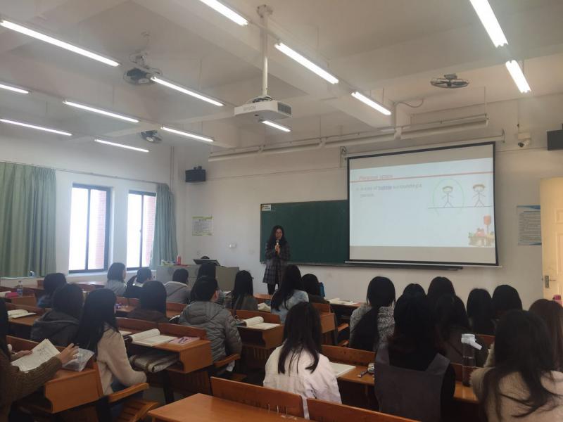 图为李明娇老师在上英语专业2014级《综合英语2》课程