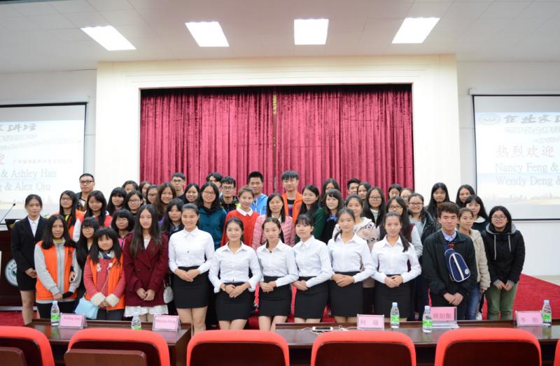 由外国语言文学系主办,外语系团总支承办的外语系企业家讲坛“揭开外企神秘面纱—畅谈企业文化与互联网+”,于2015年12月9日下午14点30分,在定静楼1F203拉开了序幕。尽管下雨,天气寒冷,阻挡不了同学们参与的热情,陆续地来到讲坛的现场。本次讲座的主讲人有广州诺特软件开发有限公司人力资源部经理Nancy Feng女士和开发部经理Ashely Han女士。广州诺特软件开发有限公司总经理Wendy Deng女士和招聘专业Alex Qiu先生,以及外语系3044永利集团官网副主任何瑜老师、办公室副主任欧衍伽老师等作为嘉宾出席了本场讲坛。