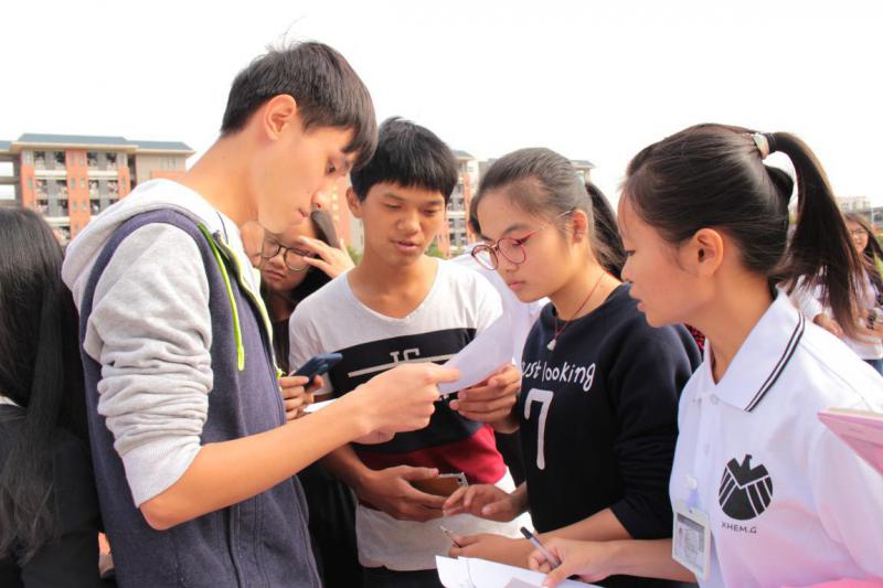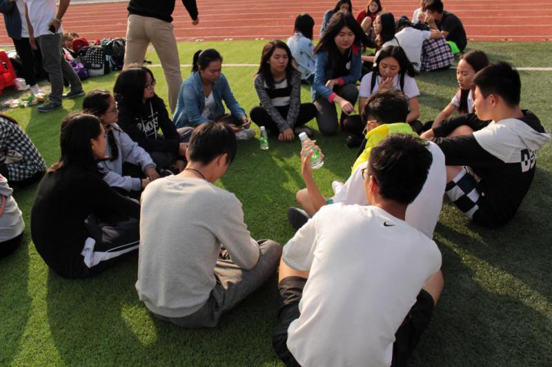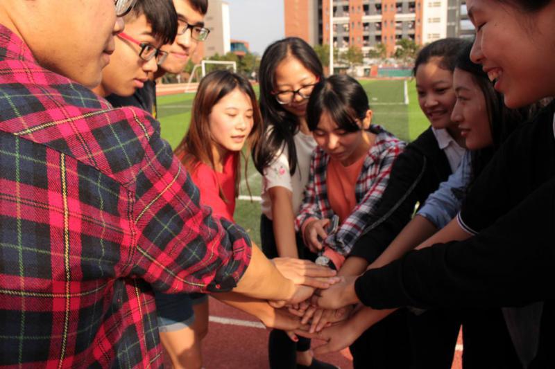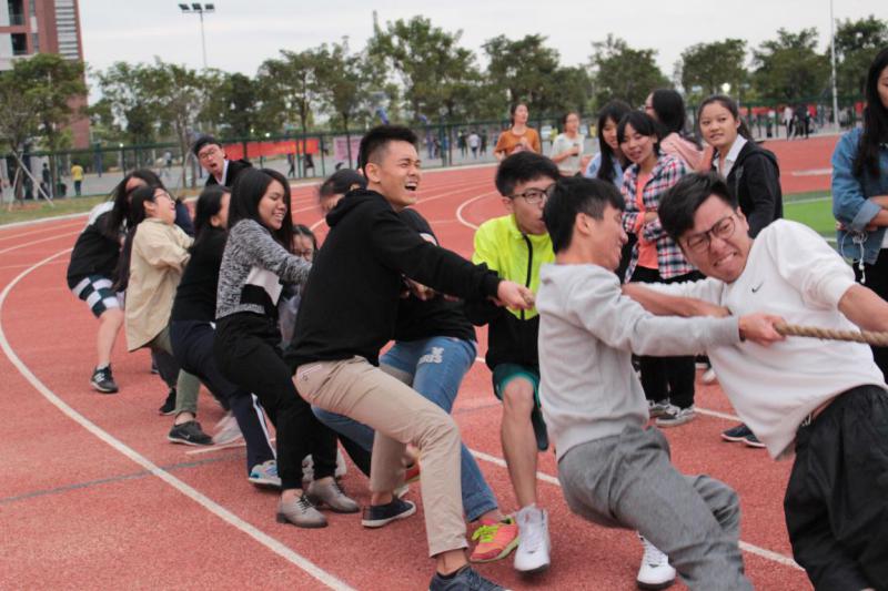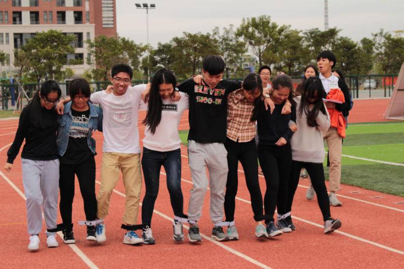 下午2点15分,各大班委准时到足球场集合,他们与活动的培训师组成一支支队伍参加游戏。游戏过程中,班委们都乐享其中。在Running EM中,班委们合理分配任务,充分发挥自己的组织能力和领导能力,齐心协力在校园中寻找问题答案;在“你话我猜”中,同学们各种搞怪的比划、无厘头的话语让现场气氛变得更加热烈了;在八人九足中,班委们不断调整自己团队的方案,“情同手足”是他们所想达到的目标;拔河比赛中的他们更是团结一致,力争上游。游戏有赢亦会有输,有奖励亦会有惩罚。因为这是一个团体活动,输的话就要全组接受惩罚,惩罚内容更是花样百出:涂满芥末的饼干,现场即兴表演,下一场比赛的优先权……整个下午,足球场上弥漫着欢声笑语,同学们在活动中收获的不仅仅只是快乐,更多的是清楚地认识到团结的重要性。