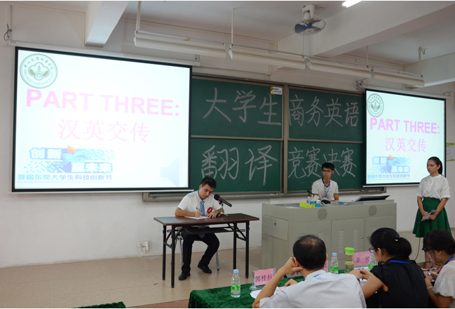 9月19日上午,由东莞市教育局主办,中山大学新华学院外国语言文学系及学科建设与科技发展部承办的首届东莞市大学生科技创新节之首届东莞市商务英语翻译大赛决赛在中山大学新华学院东莞校区成功举办。中山大学新华学院外国语言文学系林婷婷、李烨同学分别摘得口译组、笔译组一等奖。中山大学新华学院、东莞理工学院获优秀组织奖。