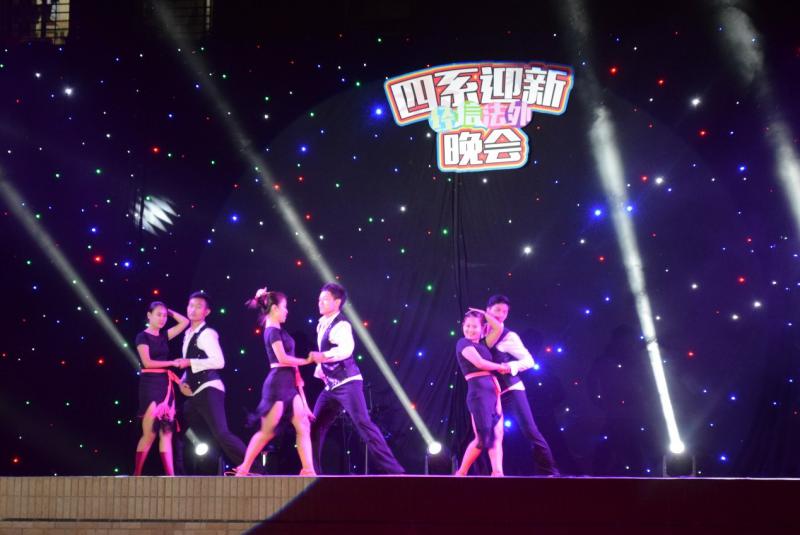 2015年10月10日晚7点,由外语系学生会,法律学系学生会,信科系学生会,经贸系学生会首次联合举办的四系迎新之草地派对在足球场舞台上举行。足球场舞台上,那片璀璨星空,映照在每个人的笑脸上。映射出耀眼的熠熠光辉是汗水的炫光,更是欢声笑语的衍生物。