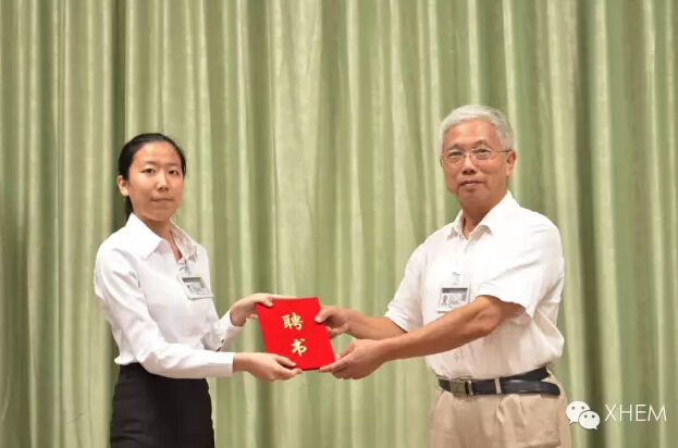 会议最后一项,黄主任为2015级代理班主任颁发聘书。并嘱咐代班们聘书代表一份责任,希望大家认真担起这份责任,带给2015级新生正能量、新风尚。
