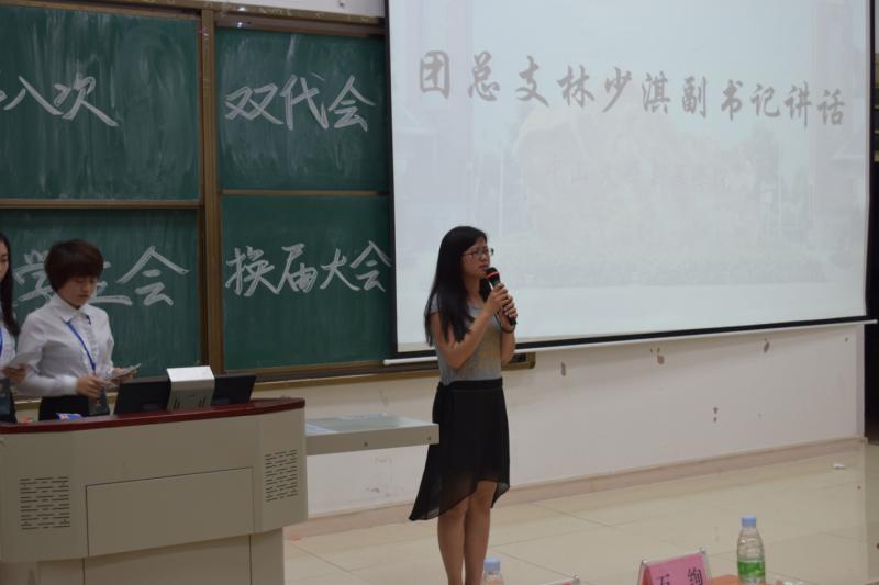 图为团总支副书记陈嘉敏进行工作总结报告