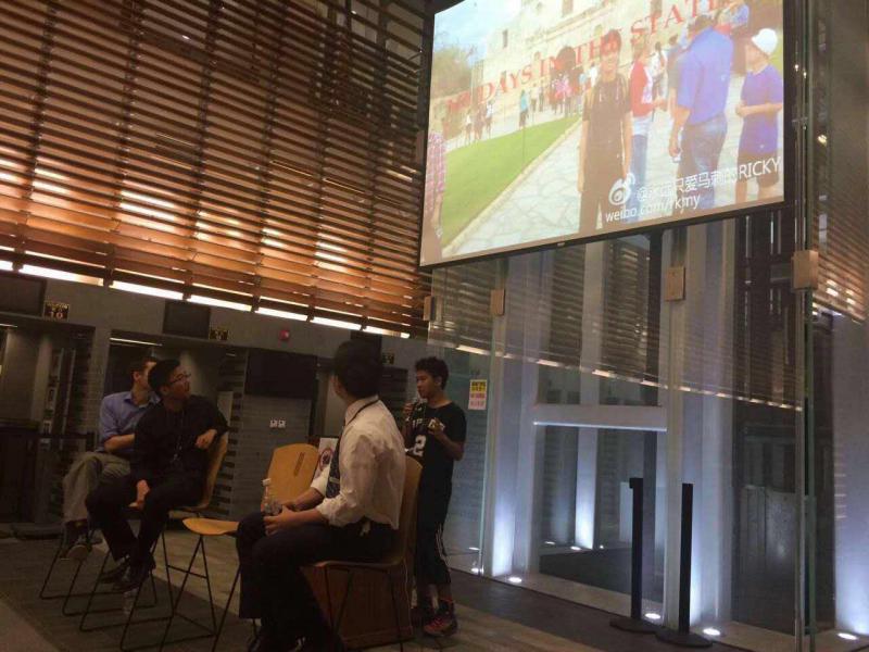 图为主持人和三位演讲嘉宾,颜锐同学演讲中