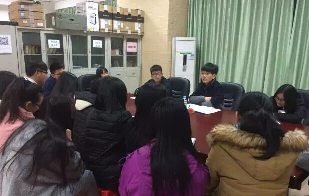 2014年12月16日星期二晚上7:00,中山大学新华学院学生社团联合会主席林世聪与外国语言文学系学生工作小组成员在外语系办公室展开了一场工作经验交流会。