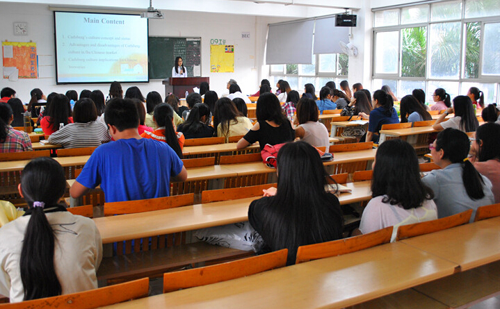 答辩分为两部分,第一部分是答辩同学进行5-6分钟的自述,包含有本论文研究主要内容介绍、实践意义和存在那些问题,第二部分为答辩老师针对论文内容提出相关问题,由同学们现场回答,双方全程用语为英语。这不仅考验了同学们对论文的熟悉程度和对专业知识的掌握程度,还考察了同学们的现场反应能力和英语口语的表达能力。最后答辩老师都一一对答辩同学做了书面记录,并指出了论文存在的不足,给予了修改意见。
