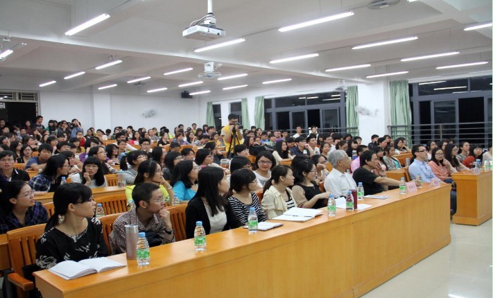 高潮迭起的时刻无疑是问答环节,教师、学生均表现十分踊跃,与教授互动热烈。师生纷纷提问:“鉴于拉美国家目前陷入的中等收入陷阱,我们中国是否也将深陷其中?”“中拉贸易如何维持健康发展?”“您如何看待中国大学生的考证热?”“中国会不会超越美国,成为超级大国?”等等。对于这些问题, Ortiz教授的回答从容淡定,对于中国未来的经济发展他表示肯定,也相信中国会采取积极的对策应对发展过程中所面临的挑战。在本环节,教授和新华师生之间的互动带动了整个讲座的气氛,在座同学情绪高昂激动,对Ortiz教授看待相关问题的深刻洞见及其机智反应表示敬佩不已。