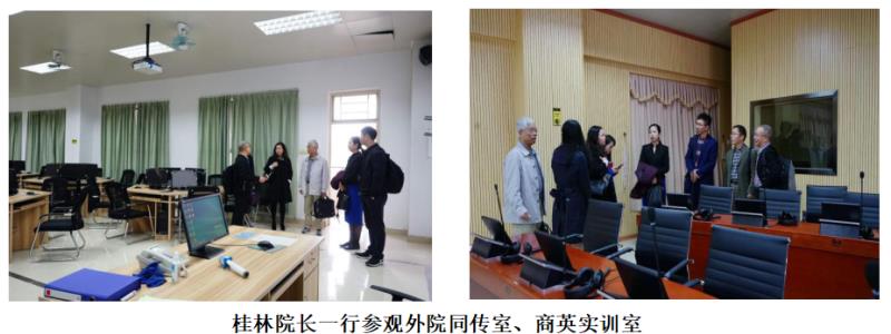 为使代表团对3044永利集团官网的教学模式有更加深入的了解,交流会结束后,桂林院长一行在3044永利集团官网领导及教师代表陪同下参观了外院同声传译实验室及商务英语实训室。桂林院长盛赞3044永利集团官网学术氛围浓厚,教学理念先进,希望在今后的学习交流中,能够不断增进彼此友谊,实现双方共赢。