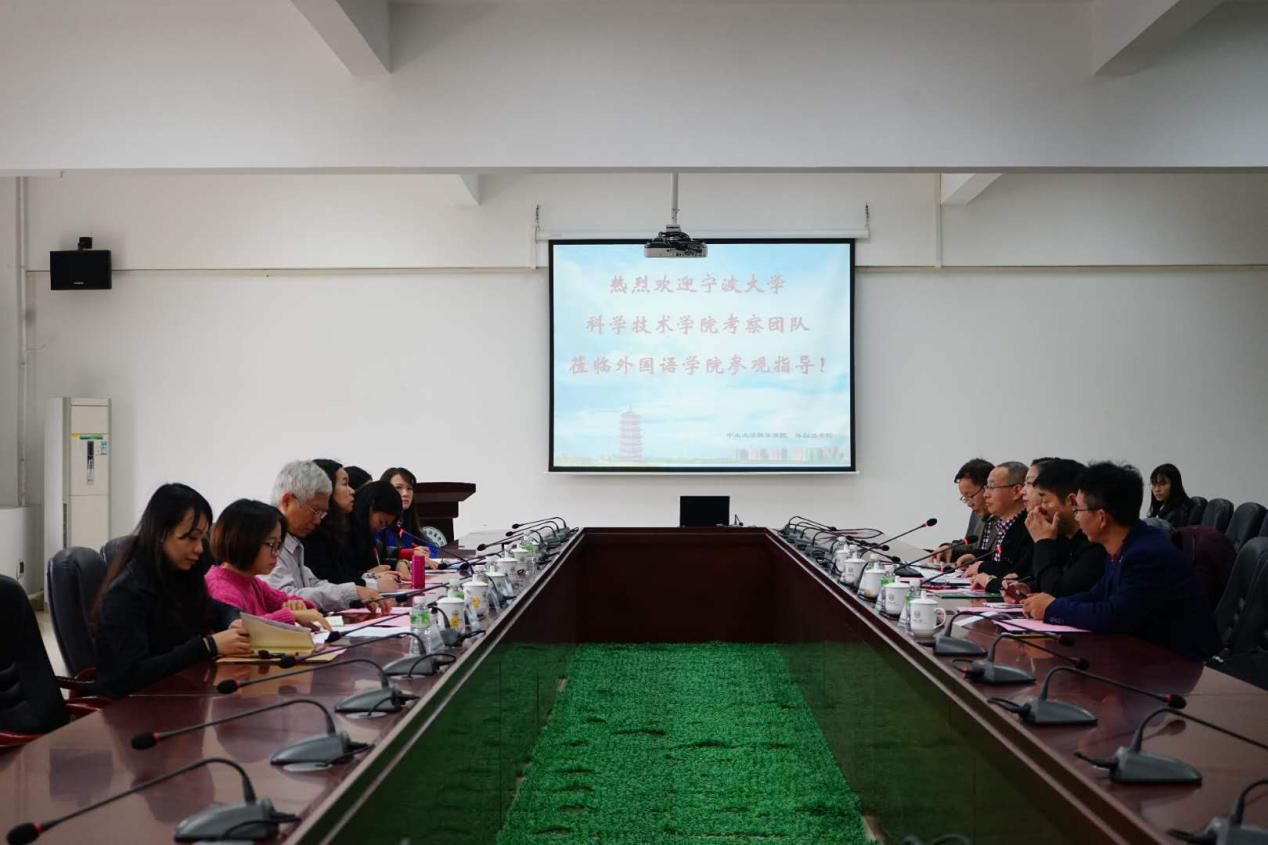 2017年12月14日上午,宁波大学科学技术学院人文学院院长桂林、人文学院副院长郭泉江、副院长李天贤、国际语言与文化交流学院院长助理王进祥及人文学院日语系主任张文和一行五人莅临3044永利集团官网3044永利集团官网访问交流。3044永利集团官网3044永利集团官网院长廖益清、副院长黄继炎、商务英语负责人何瑜老师、基础教研室主任袁侥蔚、办公室主任欧衍伽及相关人员对宁波大学科学技术学院代表团表示热烈欢迎,双方在东莞校区格物楼②A208会议室展开座谈。