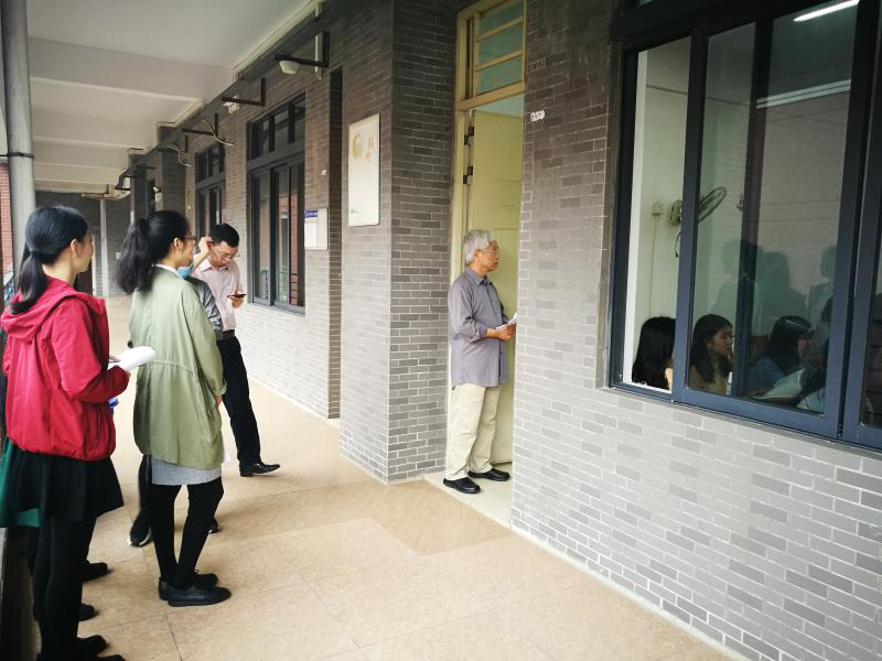廖院长和黄副院长在窗外细心观察,耐心倾听,不时地与各班辅导员讨论师生教学听课情况。走进课堂院长们欣喜地发现,教室座无虚席;老师激情饱满;学生认真听课,整个课堂呈现出一派求知若渴积极向上的教学风貌。