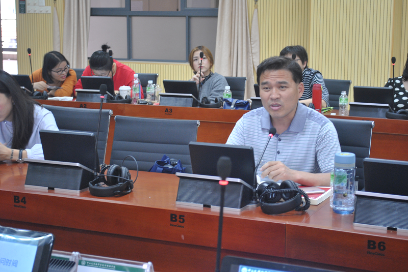 介绍完相应理论背景田教授针对具体问题—选题及写作展开讲解。在论文选题上,我们应做到重点突出、视角鲜明、问题明确。其中文章题目显得尤为重要,因为通过题目就可以体现出文章的内容。田教授还指出,在论文写作上,论文的表达方式需注意前后一致,即摘要与全文内容的一致;理论框架与具体分析的一致;研究目的与所得结论的一致;文中引用与参考文献的一致。此外,在表达方式上,论文写作还应注意前后逻辑。为使讲述更清楚易懂,田教授更以其修改的论文给在座的教师详细地解释了论文写作中需要注意的三个最重要的问题,即“论述,而非概念的堆砌”、“说理,而非命题的陈述”、“分析,而非结论的自然得出。田教授深入浅出的讲授使在场教师受益良多。