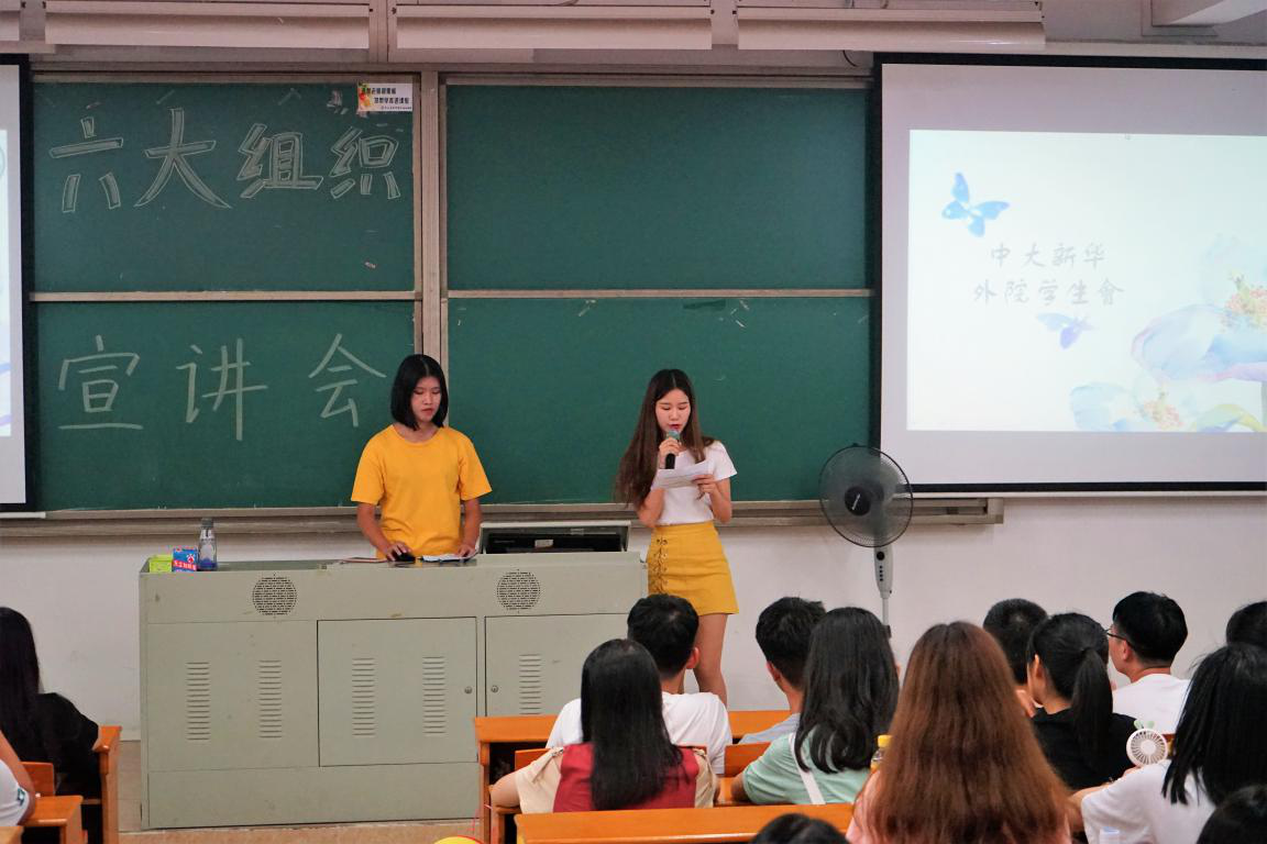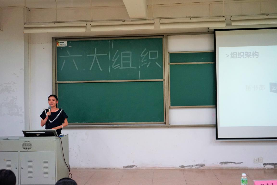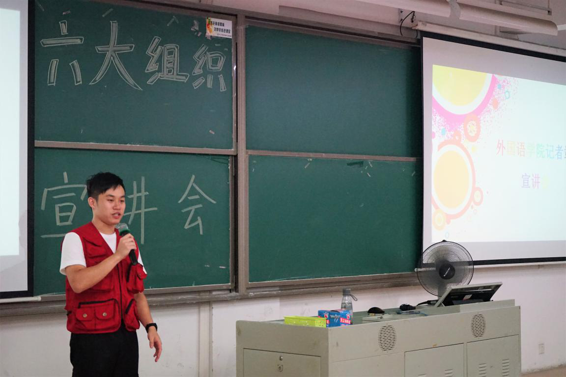 紧接着,外院团委、学生会、向日葵志愿队、记者站、百思英语协会及现代视觉研究社的负责人分别向新生们详细介绍其组织内部架构、各部门职能,展示以往的活动成果并分享了自己在组织工作中的收获。