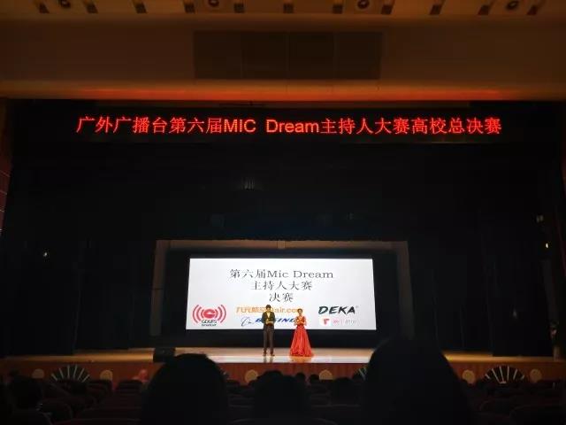2018年4月13日晚7点,广东外语外贸大学第六届“MIC Dream”主持人大赛决赛在广东外语外贸大学北校区六教报告厅举行。当日下午,在中山大学新华学院外语播音主持人才库指导老师陈秋丽的带领下,8位队员一同前往观摩比赛并进行交流学习。