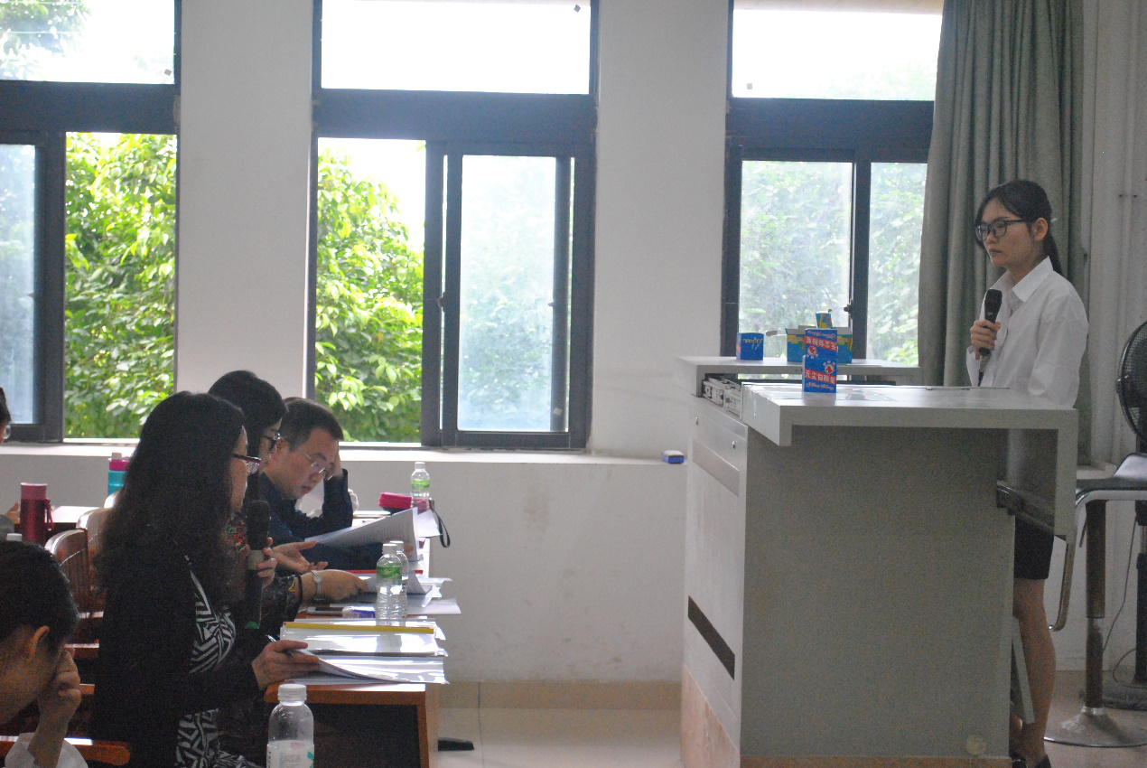 本次论文答辩分为两个环节:学生自述环节和答辩评委提问环节。答辩学生用5分钟的时间对论文研究的主要内容、论文研究的实践意义以及论文研究所存在的问题进行自述。提问环节则是答辩评委们针对同学们的自述情况,就其论文内容提出问题,并指出同学们在框架、理论依据、分析、格式等方面的问题,进而提出实质性的意见及建议。