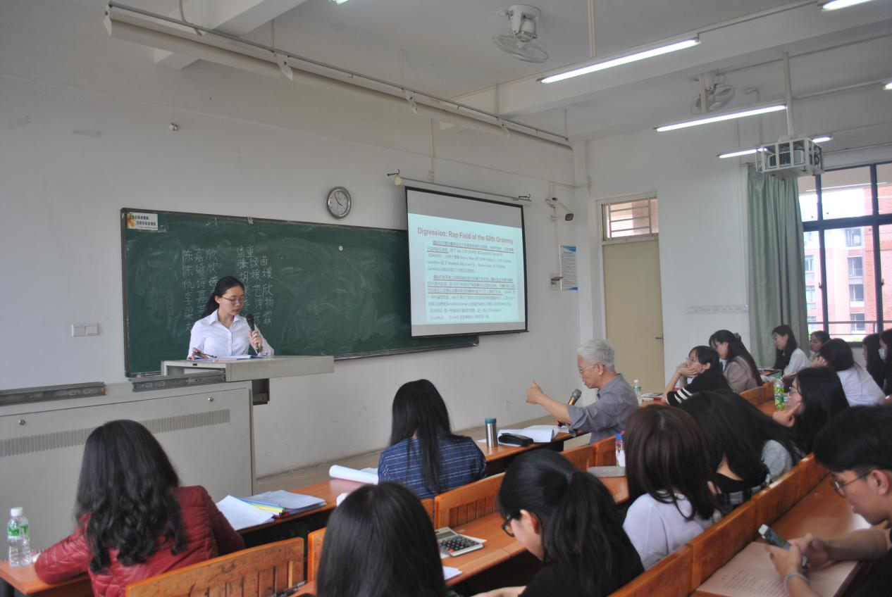 外国语学院院长廖益清提问答辩学生