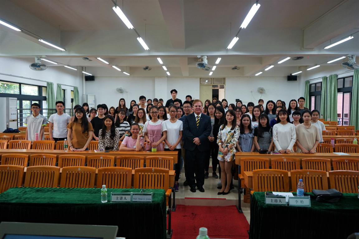 接着Peter教授简要介绍了自己的职业发展经历。他谈道,他在职业和人生道路上也曾遇到坎坷,他的人生座右铭是约翰·列侬的 “Don’t let life be what happens to you whilst you are waiting for something else”(不要让生命成为你在等待别的事情时发生的事),他一直不断挑战新事物,不断学习和尝试。取得学士学位之后,他不仅曾为知名企业Abbott Pharmaceuticals公司效力,参与研发了一款新型SELSUN洗发水,还在糖尿病领域的作出自己的科研贡献。进入教育领域,他曾担任几所知名大学院长,后被应邀到中山大学新华学院担任首席教授。