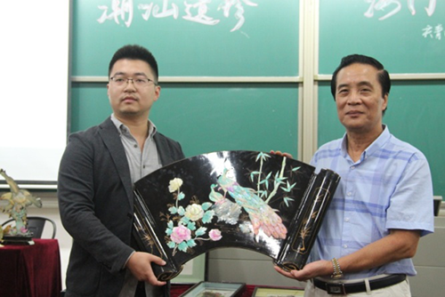 临近讲座尾声,两位主讲人将自己的贝雕藏品赠予学校,由代亮副书记颁发证书。代亮副书记表示,希望同学们下一年能继续贝雕调研活动,为贝雕传承贡献一份力。