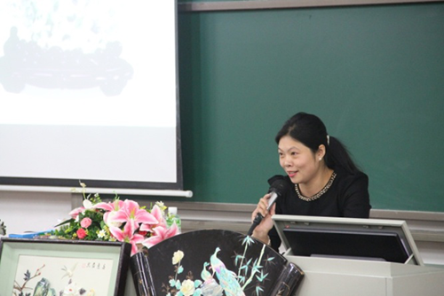 在观众们观看了由雕情贝艺社会实践队制作的关于贝雕的纪录片,从而对贝雕有了初步了解后,贝雕收藏家卢湘莹女士向大家讲解了贝雕的定义,以及贝雕与其他民间艺术品的区别,还与现场师生分享了自己收藏贝雕的心路历程。
