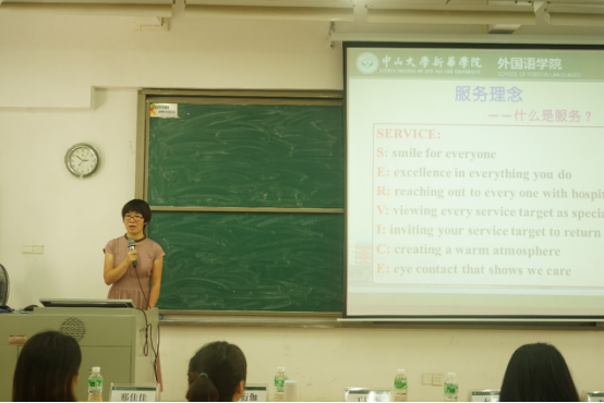 丁艮平主任向大家分享学校有关的会务、活动等接待方面的经验和注意事项,并为本次志愿服务提出建议。她指出:在志愿服务中,志愿者们要遵守制度,严格执行任务;在方案准备过程中,负责老师要注意信息对称,保证每位领导和同学信息的真实准确,并给每个小组组长分发一份详细的工作方案与备用方案,保证工作安排到位;在会场布置中,要注意“人齐麦响”,检查设备是否完好;在接待方面,接待组要对接待的嘉宾领导保持微笑等礼貌礼仪。丁主任强调,志愿者要时刻维持自己的基本素养与保持形象得体;在与嘉宾交谈时,要尊重不同国家的风俗习惯。