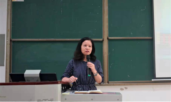 李国玉老师着重介绍了毕业论文的规范格式,提醒学生一定要细心填写,按照批注的内容填好。此外,李国玉老师介绍了论文结构、文内注释、参考文献等内容。并以去年指导的学生论文为例,指出学生通常会发生的问题并给出建议。她认为,范文和格式只是作为格式规定的参考,不要将其内容作为写作的唯一标准,更不要抄范文语句,学生必须要有自己明确的观点。