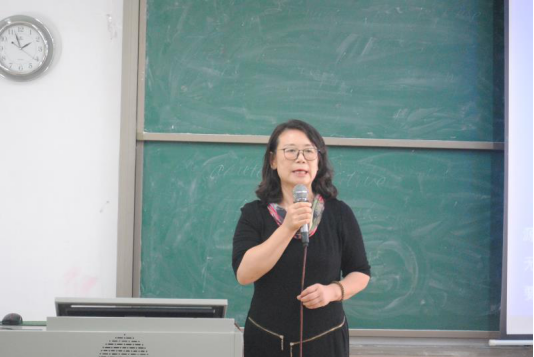 教师代表李国玉老师就开题报告、毕业论文形式结构及参考文献的格式等内容展开详细介绍。首先,李国玉老师给同学们展示了开题报告主要部分的内容和格式。其次,李国玉老师强调了毕业论文主体部分及参考文献的格式与范例。