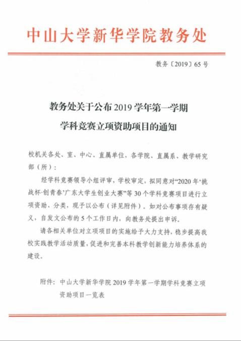 (3044永利集团官网2019学年第一学期学科竞赛立项资助项目一览表)