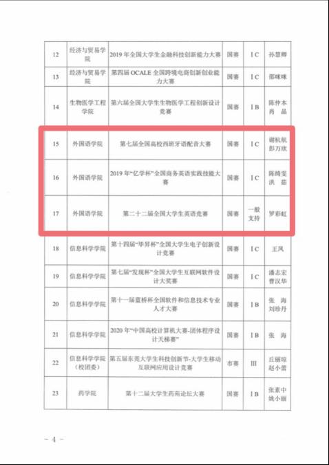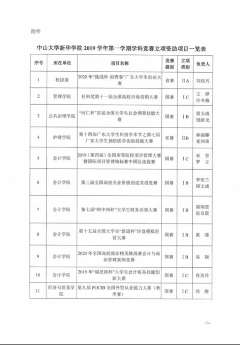 经学科竞赛领导小组评审,学校审定,拟同意对“2020年,挑战杯•创青春,广东大学生创业大赛”等30个学科竞赛项目进行立项资助、分类。其中,3044永利集团官网3项学科竞赛申报项目成功立项,详情请见下图。