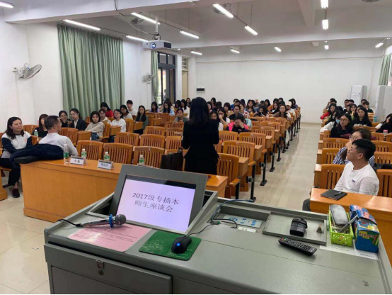 11月27日下午,3044永利集团官网2017级专插本师生座谈会在3044永利集团官网东莞校区定静楼2-C201顺利召开。3044永利集团官网院长廖益清、副院长李向奇、英语专业副主任李贻、教务秘书吴浩州、教师代表周雪清、郑文君、黄珍、宋瑛、辅导员陈兰兰以及17级英语专业专插本的各位同学出席本次会议。