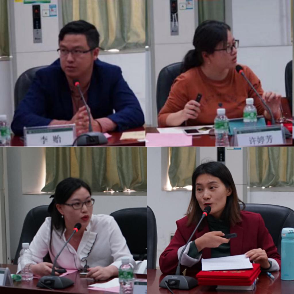 李贻副主任(左上)、许婷芳副主任(右上)、李群英老师(左下)、团委书记邢佳佳分别汇报