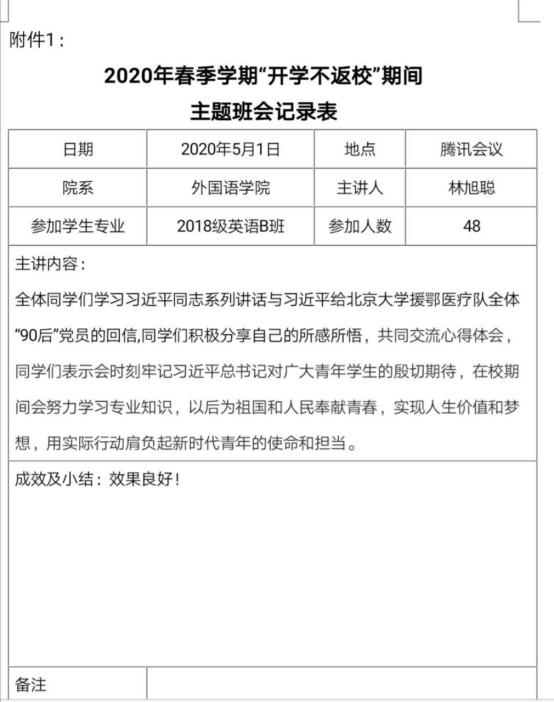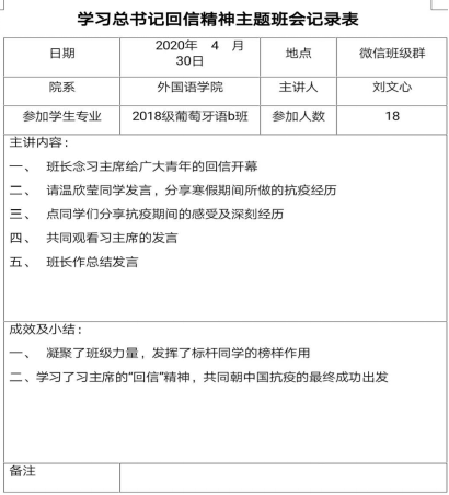 就在习近平总书记讲话后,班委们也以习近平同志系列重要讲话为主题给我们开了一次班会。此次班会以习近平总书记讲话为主题,围绕新冠肺炎疫情展开了主题班会,对我们广大青年大学生进行宣传教育。在习近平总书记的讲话中,首先我们要意识到的是加强疫情防疫工作中宣传教育和舆论引导的重要性。而全民的配合也就显得尤为重要。在宣传教育这一方面从“青年大学习—防控新冠状病毒肺炎疫情特辑”里可以看出贯彻的十分彻底,而每一期我也有认真仔细学习,相信绝大部份青年大学生也是如此。